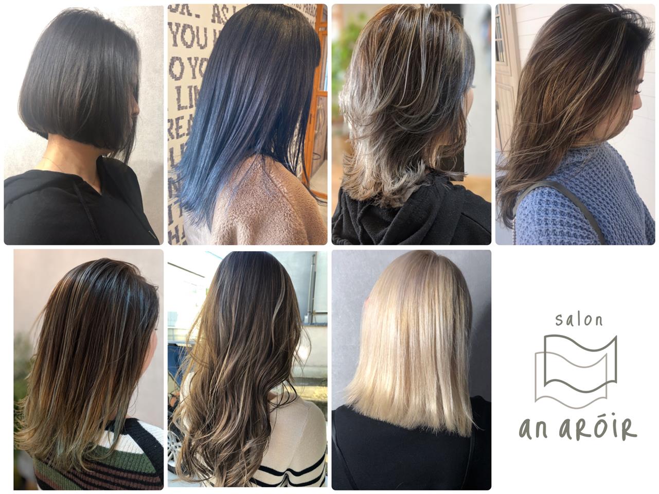 和泉市にある美容室 アンアロールです。ダメージケア、髪質改善にこだわる美容室として、ブリーチデザインも得意です。 ブリーチによる髪のダメージを減らし、繰り返しブリーチをしても綺麗な髪をつくる。もともと綺麗な人はもちろん、ダメージしすぎてる人も、綺麗にブリーチします。今回のお客様も、しっかりブリーチしてからダークトーンして、カラートリートメントで彩度の高いカラーをしてます。繰り返しできるハイトーンカラー、ぜひ体験してみてください。